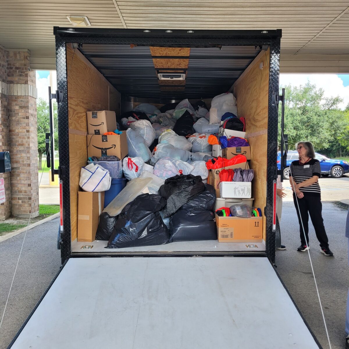 Houston Branch volunteers delivered boxes of hygiene kits & supplies, school kits, blankets and ...