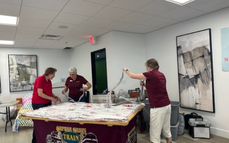 Orphan Grain Train Phoenix brought along their loom to the annual Superstition Sunrise Park Quilt show. in Apache Junction, AZ. According to Jean Weber, OGT AZ volunteer, “the loom just draws people to it. ” The original instructions for the OGT mats made from plastic grocery bags, required people to hand crochet the mats. This…