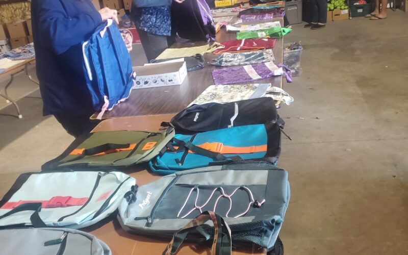 High School Youth and Adults Sew Backpacks Side-by-Side