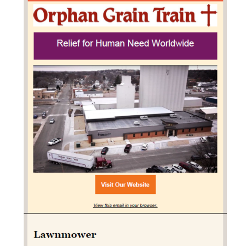 The Headliner tells about the latest shipments, events, fundraisers and distribution of humanitarian aid in the United States and worldwide by the 27 regional locations of the Orphan Grain Train.