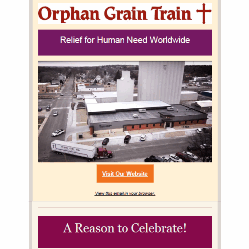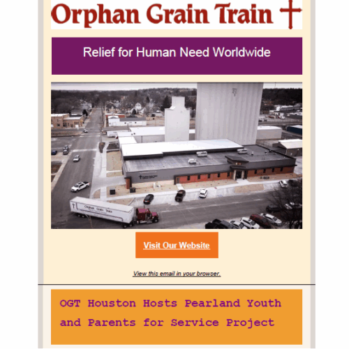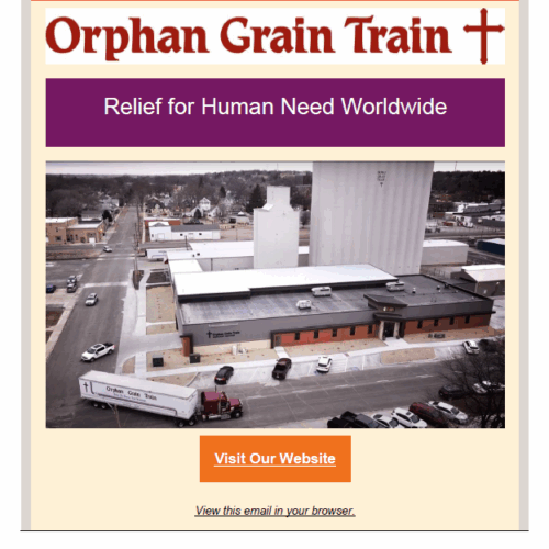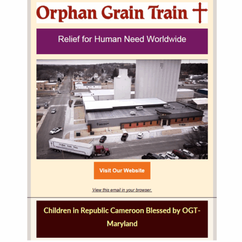 The Headliner tells about the latest shipments, events, fundraisers and distribution of humanitarian aid in the United States and worldwide by the 27 regional locations of the Orphan Grain Train.